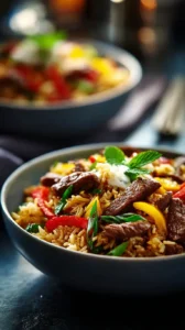 - Savory Sizzling Healthy Beef Pepper Rice Bowl
