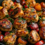 The aroma of garlic-infused chicken sizzling alongside vibrant, crisp-tender vegetables will fill your kitchen, creating an inviting atmosphere that draws the family together. Picture the juicy chicken breasts, seasoned to perfection, paired with the satisfying crunch of broccoli, the sweet juiciness of cherry tomatoes, and the colorful pop of red bell peppers and zucchini. Each bite offers a harmonious blend of texturesβfrom the tender, succulent chicken to the slightly charred edges of the veggiesβdelivering a burst of flavors that feel both comforting and fresh. The one-pan method ensures everything cooks evenly, locking in nutrients and enhancing natural tastes without overwhelming your senses.