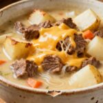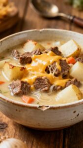 A hearty and comforting soup loaded with tender beef, vegetables, and rich flavor. This one-pot meal is simple to make and perfect for a cozy night in.
