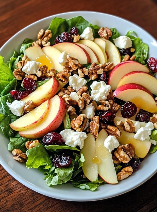 A crisp and refreshing salad featuring sweet apples, crunchy walnuts, and a tangy-sweet homemade vinaigrette.
