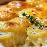 The allure of these scalloped potatoes lies in their sensory symphony: the velvety smoothness of each slice, kissed by a golden, bubbly cheese topping that crackles just right. Picture the sharp cheddar melting into a luxurious sauce, infused with a hint of cayenne for subtle warmth, creating layers of tender potatoes that are so creamy and cheesy they’ll have you reaching for seconds. Every forkful delivers that ideal balance of soft, buttery potatoes and gooey cheese, with an aroma that hints of comfort and nostalgia, making this dish a true crowd-pleaser that tantalizes the taste buds from the first whiff to the last bite.
