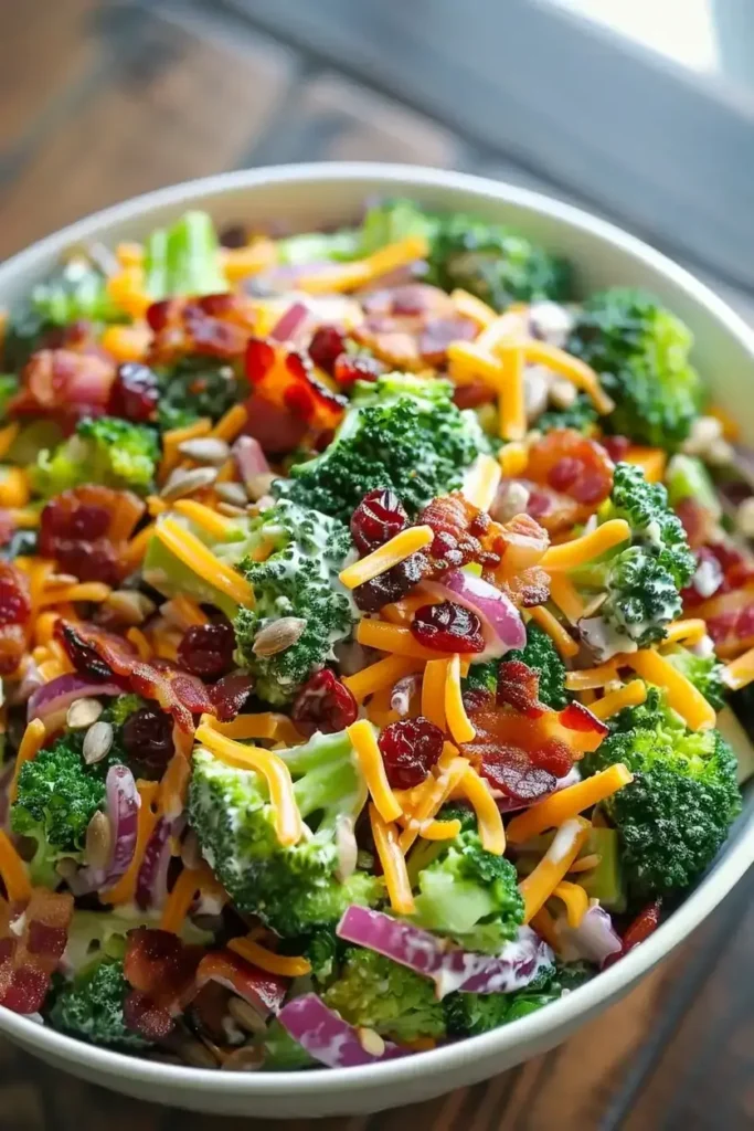 This ultimate broccoli salad is a crunchy delight featuring fresh broccoli, crispy bacon, and a creamy dressing.