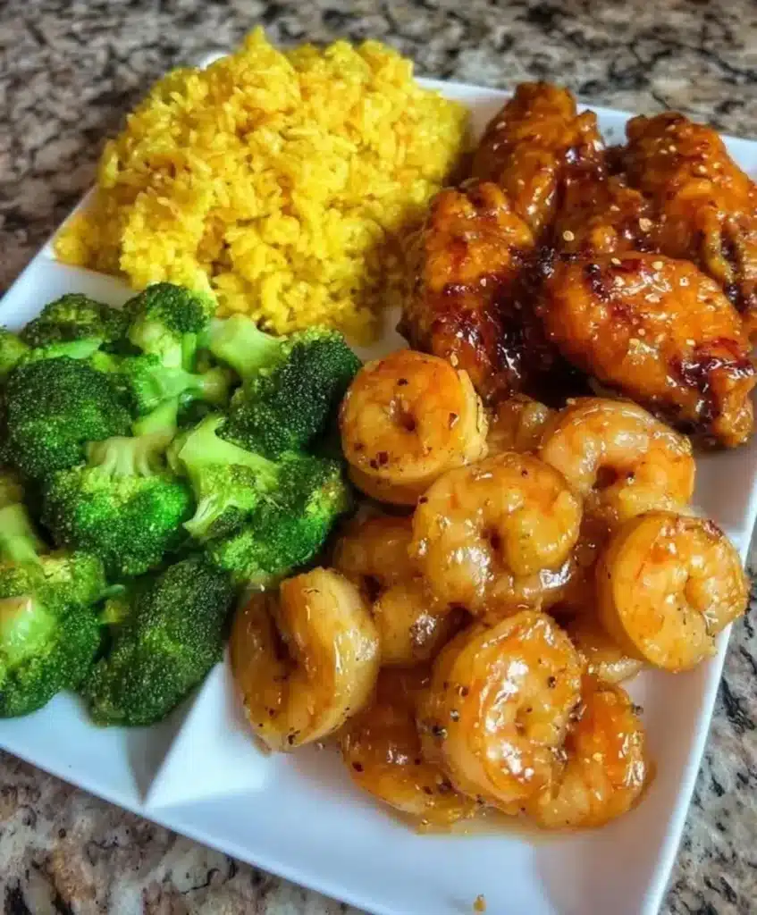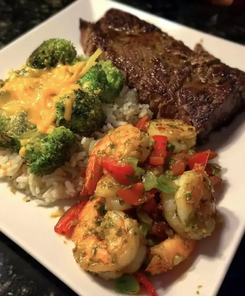 Surf & Turf Plate with Cheesy Broccoli and Rice
