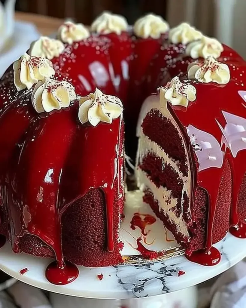 Irresistible Moist Layered Red Velvet Cheesecake Bundt Cake