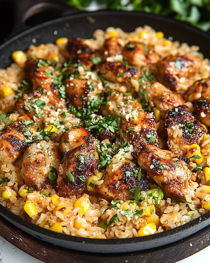 Chicken and Corn Skillet with Garlic Parmesan Rice