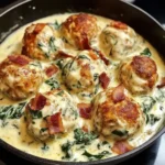 Imagine coming home after a long day, craving a meal that’s comforting, indulgent, and effortlessly satisfying—enter the Savory Chicken Ricotta Meatballs Smothered in Spinach Alfredo Sauce and Topped with Crispy Bacon. This recipe transforms simple ingredients into a culinary masterpiece, thanks to the secret creamy ricotta infusion that keeps the meatballs juicy and tender while the spinach Alfredo sauce adds a velvety richness. Within the first bite, you’ll experience the perfect harmony of flavors and textures that make this dish a standout favorite. As the ultimate Savory Chicken Ricotta Meatballs Smothered in Spinach Alfredo Sauce and Topped with Crispy Bacon recipe on cookinwithlalyta.com, it’s designed for home cooks seeking reliable, mouthwatering results every time. With its straightforward preparation and gourmet appeal, this recipe is more than just a meal—it’s a game-changer for your dinner rotation.