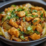 The sensory appeal of this Chinese Chicken Cabbage Stir-Fry is truly irresistible. Imagine the sizzle of garlic and ginger hitting hot oil, releasing an aromatic blend that fills your kitchen with enticing, savory notes. The chicken strips turn golden and juicy, offering a tender bite that contrasts beautifully with the cabbage’s fresh, crisp-tender crunch. Flavored with soy sauce, it delivers a perfect balance of salty umami and subtle sweetness, creating a harmonious dish that’s not overly heavy but packed with satisfying textures and layers of flavor. Every forkful is a delightful mix of warmth and vibrancy, making it a feast for the senses that you’ll want to enjoy again and again.