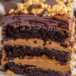 A decadent chocolate and peanut butter cake that’s rich, gooey, and perfect for dessert lovers.