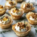 Goat cheese is the creamy, tangy heart of this recipe, providing a smooth contrast to the crunchy elements and tying the Christmas Honey, Walnut, and Goat Cheese Phyllo Cups together with its velvety texture. Select a fresh, high-quality goat cheese that’s not overly aged to avoid bitterness; it melts beautifully when baked, creating a luxurious filling. Its role is to add a savory punch that balances the honey’s sweetness. If dairy-free, swap with a plant-based cream cheese alternative, but adjust seasoning as it may lack the same tang.