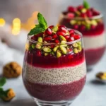 Optional Toppings (Pomegranate Seeds and Crushed Nuts): Pomegranate seeds add a juicy, tart burst, while crushed nuts provide crunch, making this Christmas Ricotta Chia Pudding visually appealing and texturally diverse. Fresh, seasonal pomegranates ensure the best flavor and color; substitute with fresh berries if unavailable, as they maintain the festive, nutritious element.