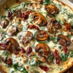 The flavors in this Creamy Baked Mushrooms with Spinach and Chicken are nothing short of irresistibleβthe mushrooms offer a meaty, umami depth that pairs beautifully with the wilted spinach’s fresh, slightly bitter notes, while the chicken adds a satisfying protein punch. Texturally, you’ll experience a delightful contrast between the soft, creamy sauce and the tender chicken cubes, with the baked top developing a golden, slightly crispy edge that makes every bite exciting. Aromas of garlic, thyme, and Parmesan fill the kitchen as it bakes, creating an inviting atmosphere that draws everyone to the table. It’s a symphony of tastes and sensations that will have you savoring each forkful.