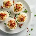 The allure of these deviled eggs lies in their irresistible creamy texture, where each bite delivers a luscious, velvety yolk filling that melts in your mouth. Picture the crispy, salty crunch of crumbled bacon mingling with the subtle onion-like zest of fresh chives, all enveloped in a smooth, rich base that evokes comfort and satisfaction. The aroma aloneβ€” a tantalizing blend of smoky bacon and herbaceous chivesβ€” will draw your guests to the table, while the visual appeal of perfectly piped eggs promises a treat for the eyes as much as the palate. This creamy deviled eggs with bacon chives irresistibly creamy recipe ensures every element, from the tender egg whites to the flavorful filling, works in perfect symphony to create an appetizer that’s as visually stunning as it is deliciously satisfying.
