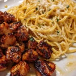 Creamy Garlic Butter Chicken Bites with Parmesan Spaghetti