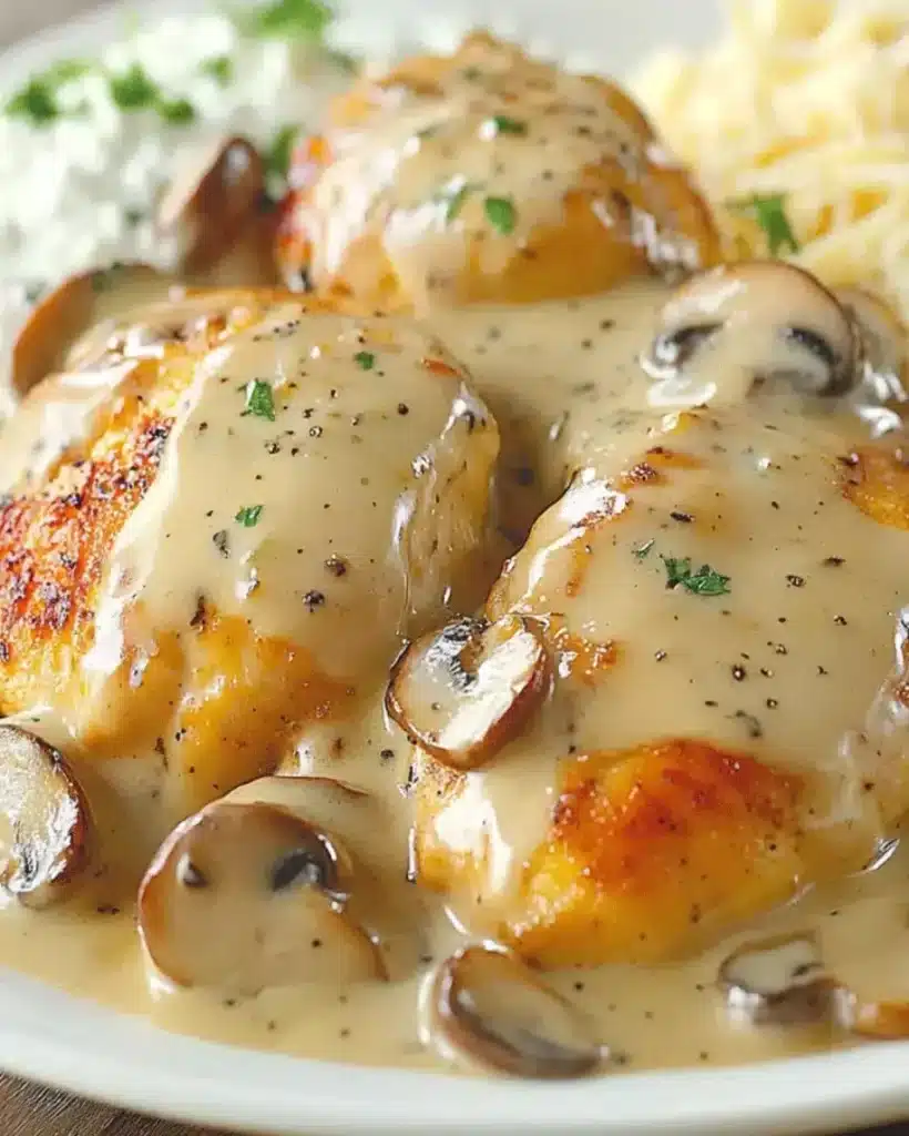 For an impressive presentation of your Creamy Texas Roadhouse Smothered Chicken A Comfort Food Must Try, plate the chicken on a warm bed of mashed potatoes or rice to soak up the extra creamy gravy. Garnish with fresh parsley or chives for a pop of color and subtle herb flavor that enhances the dish without overpowering it. Pair this comfort food classic with sides like steamed green beans or garlic bread for a balanced meal, or go bolder with cornbread and coleslaw to evoke that true Texas Roadhouse vibe. The key is to highlight the velvety sauce, perhaps by drizzling it artfully around the plate.