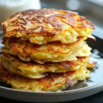 For make-ahead strategy, grate and squeeze the potatoes and onion up to 3 days in advance, storing them in an airtight container in the refrigerator after mixing with eggs and other ingredients—just hold off on frying until you’re ready to serve to maintain crispiness. When storing leftovers, place cooled pancakes in an airtight container in the fridge for up to 2 days or freeze them on a baking sheet before transferring to a freezer bag for up to 3 months. The best way to reheat is in a preheated oven at 350°F for 10 minutes or in a skillet over medium heat to restore that original crispy texture and flavor without sogginess.