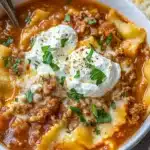 The Chef’s Secret to this Crockpot Lasagna Soup Effortless and Delicious lies in the strategic addition of the creamy cheese mixture at the end, which creates an ultra-rich, restaurant-quality topping that elevates the soup from ordinary to extraordinary. By mixing ricotta, Parmesan, and mozzarella just before serving, you lock in a velvety texture that mimics the layers of traditional lasagna without any extra effort. This technique ensures the cheese doesn’t break down during the long cook, preserving its gooey appeal and making the soup feel indulgent yet light.