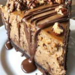 To serve this Easy Caramel Chocolate Cheesecake Recipe The Ultimate Dessert at a party, chill it thoroughly for easy slicing, then present on a decorative platter with garnishes like fresh mint or chocolate shavings. Pair with coffee or dessert wines, and cut smaller portions for sharing to highlight its rich, ultra-creamy appeal without overwhelming guests.