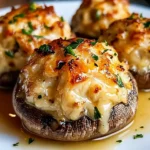 The moment these easy stuffed mushrooms with crab and cheese emerge from the oven, your kitchen fills with an irresistible aroma of savory seafood and herbs, mingled with the earthy scent of mushrooms. Bite into one, and you’ll experience a delightful contrast: the tender, juicy mushroom caps give way to a lusciously creamy center that’s rich with the sweetness of crab meat, the tang of Parmesan, and the smooth melt of cream cheese. Textures play a star role here—the filling is velvety and gooey, almost like a luxurious dip baked right into each cap, while the edges turn golden and slightly crisp for that satisfying crunch. Pair this with the subtle garlic undertones and fresh green onions, and you’ve got a flavor profile that’s balanced, hearty, and utterly addictive.