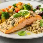Easy Mediterranean Salmon with Herbs pairs beautifully with sides like quinoa, roasted vegetables, or a fresh Greek salad to complement its light, herbaceous flavors. These options add nutrients and balance the meal, staying true to the Mediterranean diet. For variety, try couscous or whole-grain rice, which absorb the salmon’s juices and make for a wholesome, satisfying dinner.