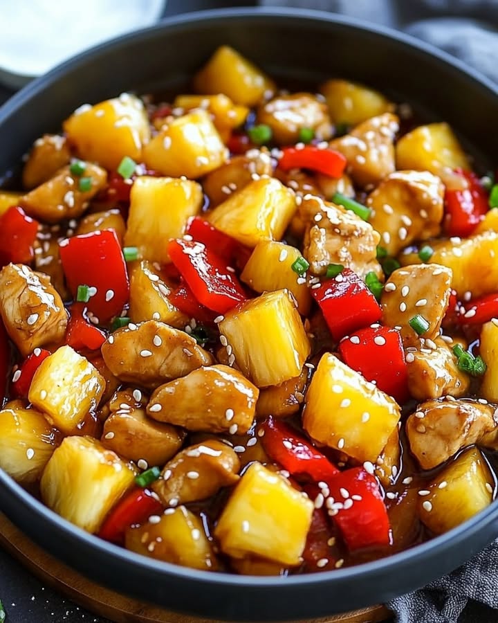- Visual Appeal: Vibrant yellow pineapple pieces stand out against green peppers and golden-brown chicken. A sprinkle of green onions adds the perfect finishing touch.