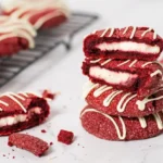 Soft and chewy red velvet cookies made with simple ingredients, perfect for a quick dessert.