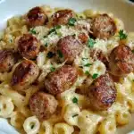 The allure of this garlic butter sausage bites with creamy parmesan pasta lies in its symphony of flavors and texturesβpicture the golden-brown crispiness of the sausage bites contrasting with the silky smoothness of the parmesan-infused cream sauce. Each bite delivers a burst of garlicky aroma that fills your kitchen, while the pasta absorbs the buttery richness, creating a harmonious blend that’s both hearty and indulgent. The smokiness from the sausage pairs beautifully with the sharp, nutty notes of parmesan, resulting in a dish that’s not just satisfying but also visually appealing, with its glossy sauce clinging to the noodles for that perfect, mouthwatering finish.