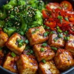 Imagine the sizzle of tofu cubes caramelizing in a pan, releasing an irresistible aroma of fresh ginger and soy sauce that fills your kitchen. The Ginger Soy Tofu Stir Fry offers a symphony of textures and tastes: the tofu becomes tender yet slightly crispy on the outside, soaking up the umami-rich marinade for a savory punch. Paired with colorful bell peppers and broccoli, the dish delivers a satisfying crunch from the vegetables, balanced by the warm, spicy notes of ginger that awaken your senses. Every bite is a harmonious blend of sweet, salty, and earthy flavors, making this tofu stir fry an unforgettable experience that’s as visually appealing as it is delicious.