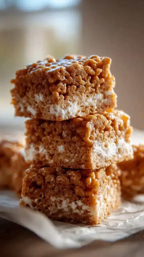 Storing Leftovers: Store cooled treats in an airtight container at room temperature for up to 3 days to maintain freshness; for longer storage, wrap individual pieces in plastic and freeze for up to 2 months, which helps preserve the chewy consistency of your Rice Krispie Treats with gingerbread.