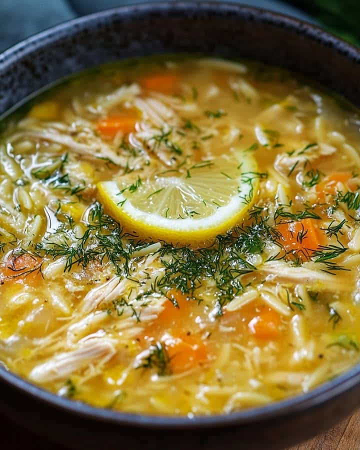 A bright and comforting soup featuring tender chicken, orzo pasta, and a vibrant lemon-herb broth.