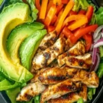 The aromas alone will draw you inβthe sizzling char of chili-rubbed chicken meeting the bright, citrusy punch of fresh lime, all mingling with the smoky grill notes. Each forkful offers a delightful contrast of textures: tender, juicy chicken strips contrasting with crisp mixed greens, crunchy red bell peppers, and creamy avocado chunks. The flavors are a symphonyβspicy chili powder and cumin warming your palate, while the lime juice adds a zesty brightness that cuts through the richness, leaving you refreshed and satisfied. This Grilled Chili Lime Chicken Fajita Salad Fresh Zesty So Flavorful isn’t just a meal; it’s a sensory adventure that makes every ingredient shine, from the caramelized edges of the grilled chicken to the cool, herbaceous garnish of cilantro.
