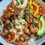 The Chef’s Secret lies in the irresistibly creamy sauce, which uses a simple blend of Greek yogurt, fresh lime juice, and minced garlic to create a tangy, velvety finish that ties together the grilled shrimp and avocado corn salsa. This unique angle transforms a basic shrimp bowl into a restaurant-quality dish by adding a layer of creaminess that enhances the natural sweetness of the corn and the richness of the avocado, all while keeping the recipe light and healthy.