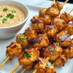 The Grilled Thai Curry Chicken Skewers with Luscious Coconut Peanut Sauce burst with an irresistible medley of flavors and textures that will transport you straight to the streets of Bangkok. Picture tender chicken cubes, grilled to a perfect char, offering a smoky, succulent bite contrasted by the crisp crunch of red bell peppers and onions. The marinade infuses the meat with fiery Thai red curry notes, balanced by the sweetness of brown sugar and the umami depth of fish sauce, while the extra creamy coconut peanut sauce adds a velvety richness. This sauce coats your palate with nutty undertones from peanut butter, a subtle tang from lime juice, and a gentle heat from red pepper flakes, creating a harmonious blend that’s both spicy and soothing. Every skewer delivers an explosion of aromas—think fragrant coconut milk mingling with grilled char—making this dish not just a meal, but a sensory adventure.