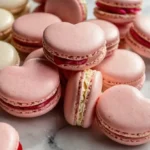 Delicious heart-shaped macarons perfect for Valentine’s Day, made with almond flour and flavored fillings.