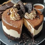 The aromas of melting chocolate and fresh-baked goodness will fill your kitchen, drawing everyone in with anticipation. Each slice boasts a triple chocolate experience: the creamy cheesecake base, a luscious fudge infusion that adds an extra layer of moisture and depth, and the unmistakable crunch of Oreo cookies that provides the perfect contrast. Texturally, it’s a dream—silky smooth interior giving way to that satisfying snap, with flavors that dance on your palate: bittersweet chocolate notes balanced by tangy cream cheese and a hint of vanilla warmth. This isn’t just a dessert; it’s a sensory masterpiece that will have you savoring every mouthful.
