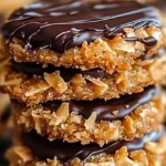 The moment these Homemade Samoas Girl Scout Cookies emerge from the oven, your kitchen fills with the irresistible aroma of toasted coconut and warm caramel, mingling with the rich, buttery scent of browned butter. Each cookie boasts a crisp yet tender shortbread base that crumbles delightfully, topped with gooey caramel that clings perfectly to shreds of golden coconut. The semisweet chocolate drizzle adds a smooth, velvety finish, creating a symphony of texturesβ€”from the satisfying crunch to the chewy centerβ€”that will have you savoring every bite. It’s not just a cookie; it’s an experience that balances sweet, salty, and indulgent notes in perfect harmony.