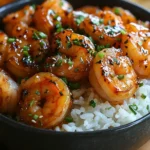 The aromas of sizzling garlic and sweet honey fill the air, creating a tantalizing scent that draws everyone to the table. Each shrimp boasts a juicy, succulent texture, coated in a glossy, sticky honey garlic sauce that’s both sweet and savory, with a hint of umami from the soy sauce. The rice serves as a fluffy, comforting base, absorbing the flavorful juices and providing a satisfying contrast to the tender shrimp. Every mouthful delivers a symphony of flavors— the slight crispness of the shrimp’s exterior giving way to its tender interior, while the honey’s natural sweetness dances with the garlic’s pungent kick, making this 20 Minute Honey Garlic Shrimp Rice Bowl an irresistible treat that feels indulgent yet light.