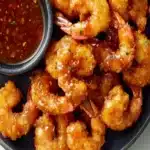 Crispy fried shrimp coated in a sweet and spicy hot honey glaze, making it the ideal appetizer or main dish with a perfect balance of flavors.