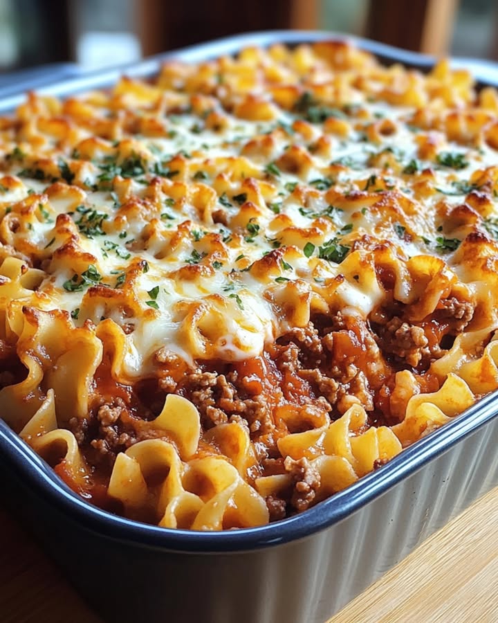 A comforting, layered casserole with ground beef, creamy cheese, and tender pasta that is sure to become a family favorite.