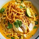 The allure of this Khao Soi Recipe Thai Coconut Curry Noodles Youll Crave lies in its symphony of flavors and textures. Picture silky coconut milk swirling with red curry paste, creating a velvety broth that’s both spicy and soothing. The tender chicken thighs absorb the aromatic spices like turmeric and cumin, while the egg noodles offer a satisfying chew that contrasts beautifully with the creamy sauce. Fresh herbs like cilantro add a burst of brightness, and the subtle tang from lime wedges elevates the dish, leaving your taste buds tingling with every spoonful. This recipe isn’t just food; it’s an experience that fills your kitchen with irresistible aromas of ginger, garlic, and exotic spices.