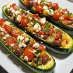 This Mediterranean Stuffed Zucchini Recipe offers a burst of fresh, vibrant flavors from herbs, tomatoes, and olive oil, making it a healthy and satisfying meal perfect for a light dinner or special gathering. Its simple stuffing method highlights the natural crunch of zucchini while incorporating the essence of Mediterranean cuisine, providing a nutritious option that’s both easy to prepare and delicious. For a refreshing side, try pairing it with our Spicy Korean Cucumber Salad Recipe, or experiment with a variation by adding shrimp for extra protein, as seen in our Quick One Pan Garlic Parmesan Shrimp Recipe.