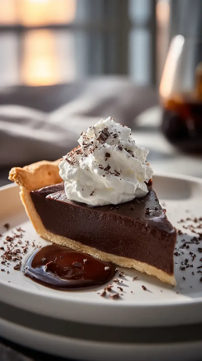 A creamy, rich chocolate pie with a classic custard-like filling, topped with whipped cream. This timeless dessert is perfect for any occasion and evokes nostalgic flavors.