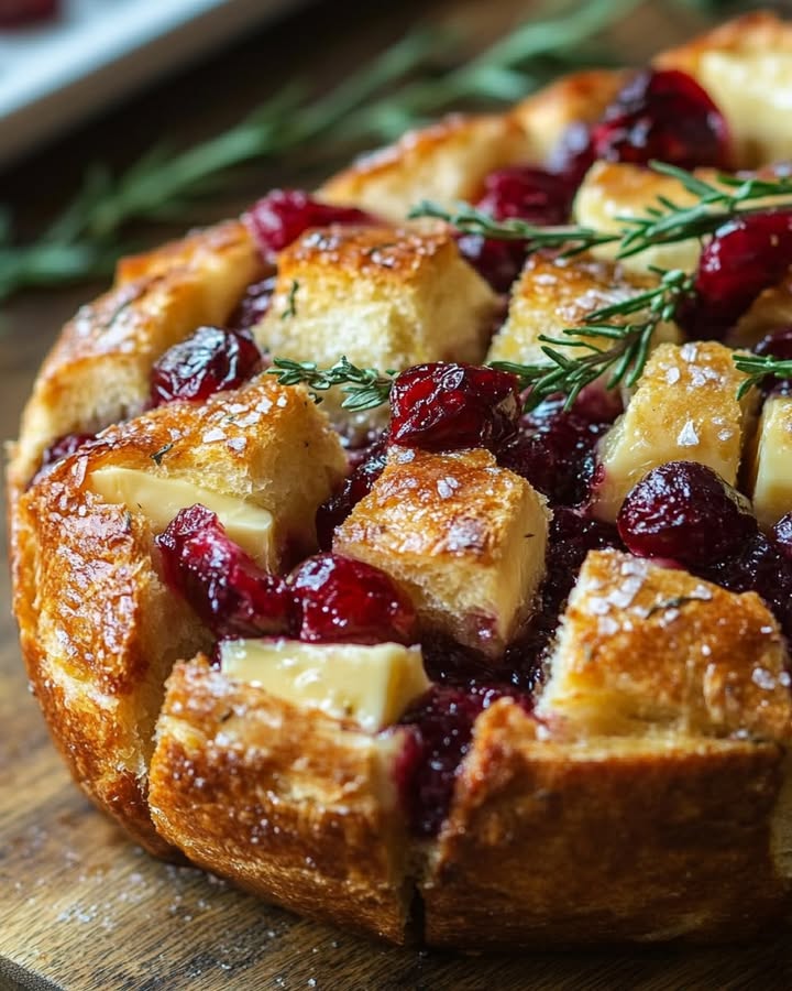 Remove the Pull-Apart Sourdough Brie and Cranberry Bread from the oven and let it cool for a few minutes before serving. Drizzle with a bit of honey for extra sweetness, if desired. Serve warm and enjoy the pull-apart goodness! Engaging Twist: Garnish with a few fresh rosemary sprigs and a sprinkle of chopped walnuts or pecans for a visually appealing presentation.