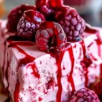 The Chef’s Secret: The magic of this Raspberry Ice Cream Cheesecake lies in blending softened vanilla ice cream directly into the cream cheese mixture, creating an ultra-creamy base that’s effortlessly smooth and freezer-friendly. This no-bake technique ensures a luxurious, melt-in-your-mouth texture without the risk of overbaking, setting it apart from traditional cheesecakes that can turn dense or crack. By incorporating fresh raspberries at this stage, you lock in their vibrant flavor and natural juices, resulting in a refreshing burst that elevates the overall dessert to new heights of deliciousness.
