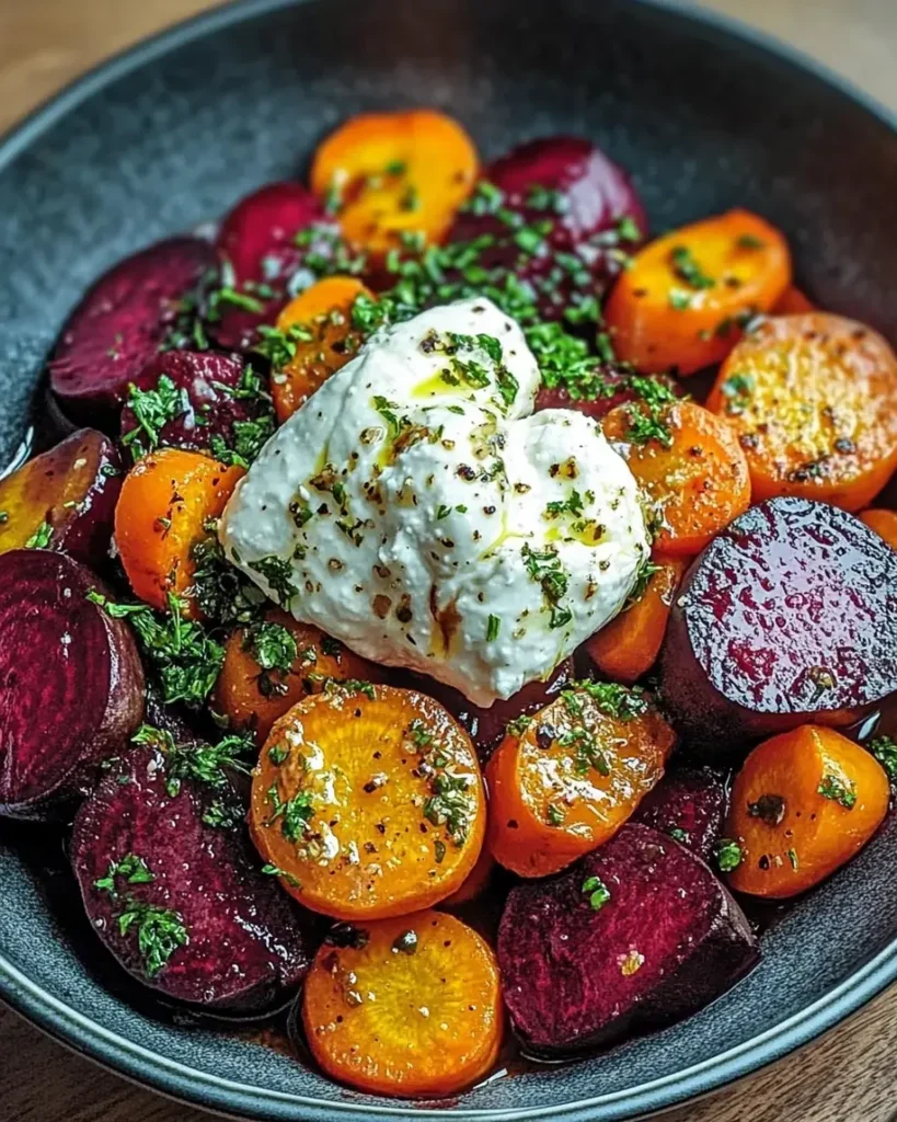This Vibrant Roasted Beets Carrots with Creamy Burrata Salad offers a burst of earthy sweetness from the roasted vegetables, perfectly complemented by the rich, creamy texture of burrata for a fresh and satisfying meal that celebrates seasonal flavors. It’s an ideal dish for a light lunch or a colorful side at gatherings, highlighting how simple ingredients can create something truly special. For a tasty variation, try adding toasted nuts for extra crunch, and if you enjoy burrata, be sure to check out the Fresh Burrata Bruschetta Recipe or the Vibrant Beet Hummus Stuffed Sweet Potato for more inspired ideas.