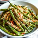 The aroma of freshly roasted green beans, mingled with the nutty scent of melted Parmesan cheese, fills your kitchen with an inviting warmth that promises pure satisfaction. Each bite offers a delightful contrast of textures: the beans turn irresistibly crispy on the outside while remaining tender inside, with the Parmesan forming a savory, golden crust that adds a rich, salty depth. The olive oil enhances the beans’ natural earthiness, creating a harmonious blend of flavors that feels both comforting and gourmet. Picture serving these roasted Parmesan green beans alongside your main course, where their vibrant green color and cheesy allure make them impossible to resist.
