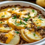 Serve this Slow Cooker Cowboy Potato Casserole Recipe for Busy Days hot, straight from the cooker, for maximum comfort and flavor. For creative plating, scoop generous portions into bowls and top with a sprinkle of fresh herbs like parsley for a pop of color and freshness. The melted cheese creates an impressive, gooey layer that pairs beautifully with the tender potatoes and beef. Complement this main course with simple sides like a crisp green salad to balance the richness, or steamed vegetables for added nutrition. For a complete meal, pair it with garlic bread or cornbread, which soaks up the creamy sauces, or even a light fruit salad to contrast the heartiness, making it ideal for family dinners or potlucks.