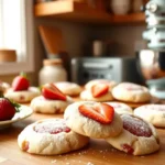 Elevate your strawberry sugar cookies sweet soft irresistible with creative plating by arranging them on a rustic wooden board alongside fresh strawberry slices and a dusting of powdered sugar for a visually stunning display. For an impressive garnish, add edible flowers or a drizzle of strawberry glaze to enhance the vibrant colors and flavors. These cookies pair beautifully with a scoop of vanilla ice cream or a cup of herbal tea, making them an ideal dessert course. They’re also perfect as a complement to lighter meals like a fresh fruit salad or even a brunch spread, where their soft texture adds a delightful contrast.