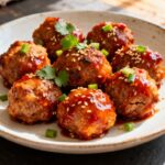 Tender meatballs coated in a sweet and spicy gochujang glaze, inspired by Korean BBQ flavors.