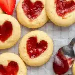 For best results, use high-quality strawberry jam. Cookies can be stored in an airtight container for up to 5 days.