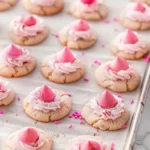 These delightful strawberry kiss cookies are perfect for Valentine’s Day, featuring a soft cookie base with a sweet strawberry kiss topping.